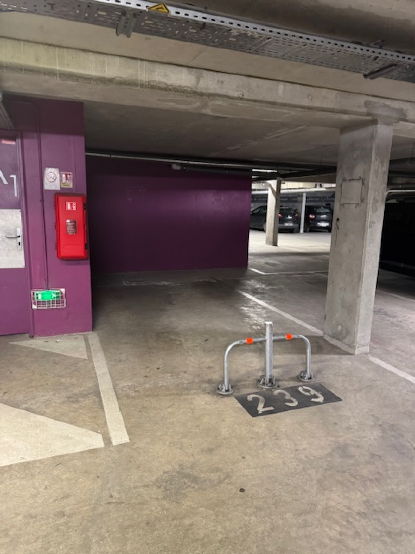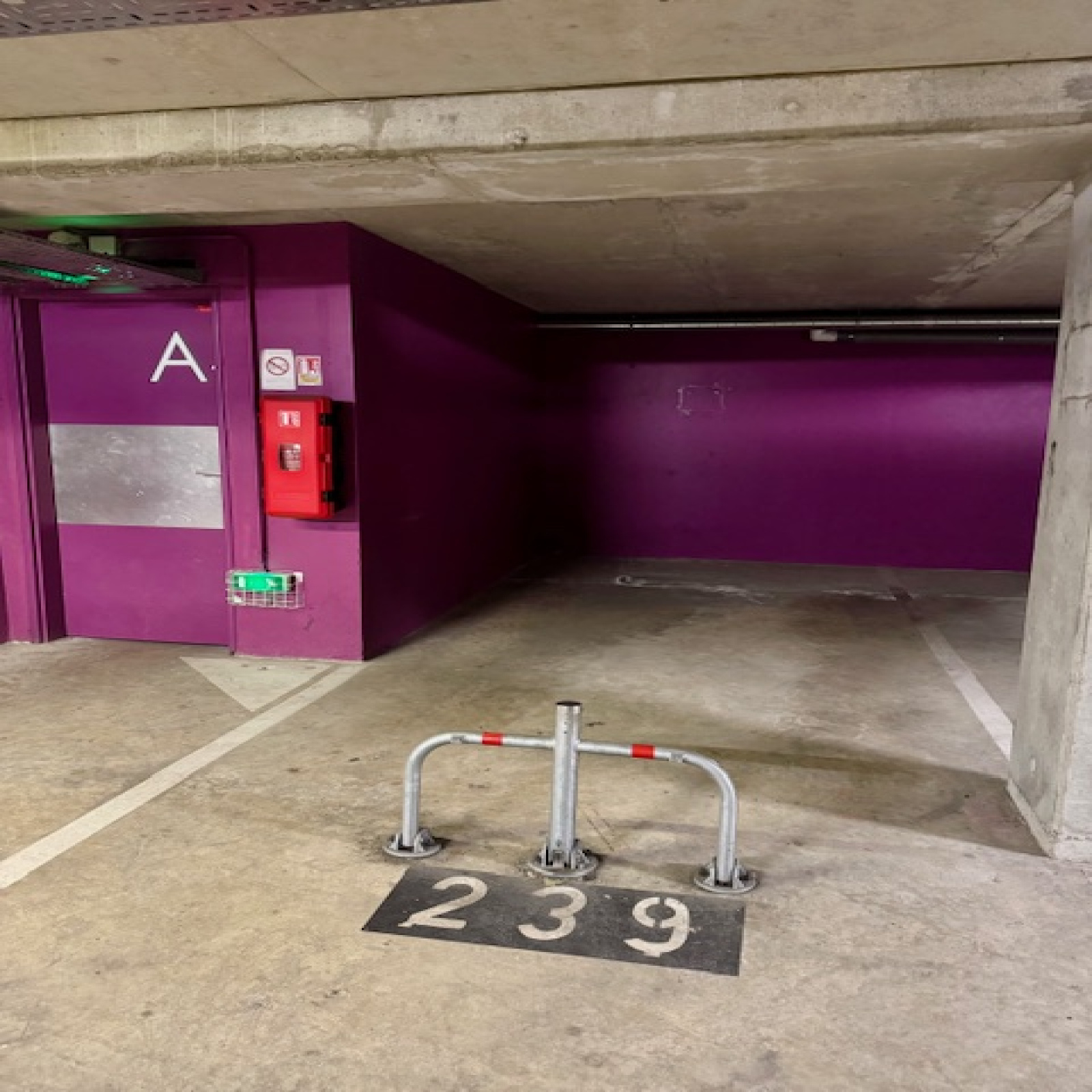 Situé dans une résidence sécurisée, cet emplacement de stationnement en sous-sol est accessible via une porte de garage automatique. La place est protégée par une barre de sécurité avec cadenas.