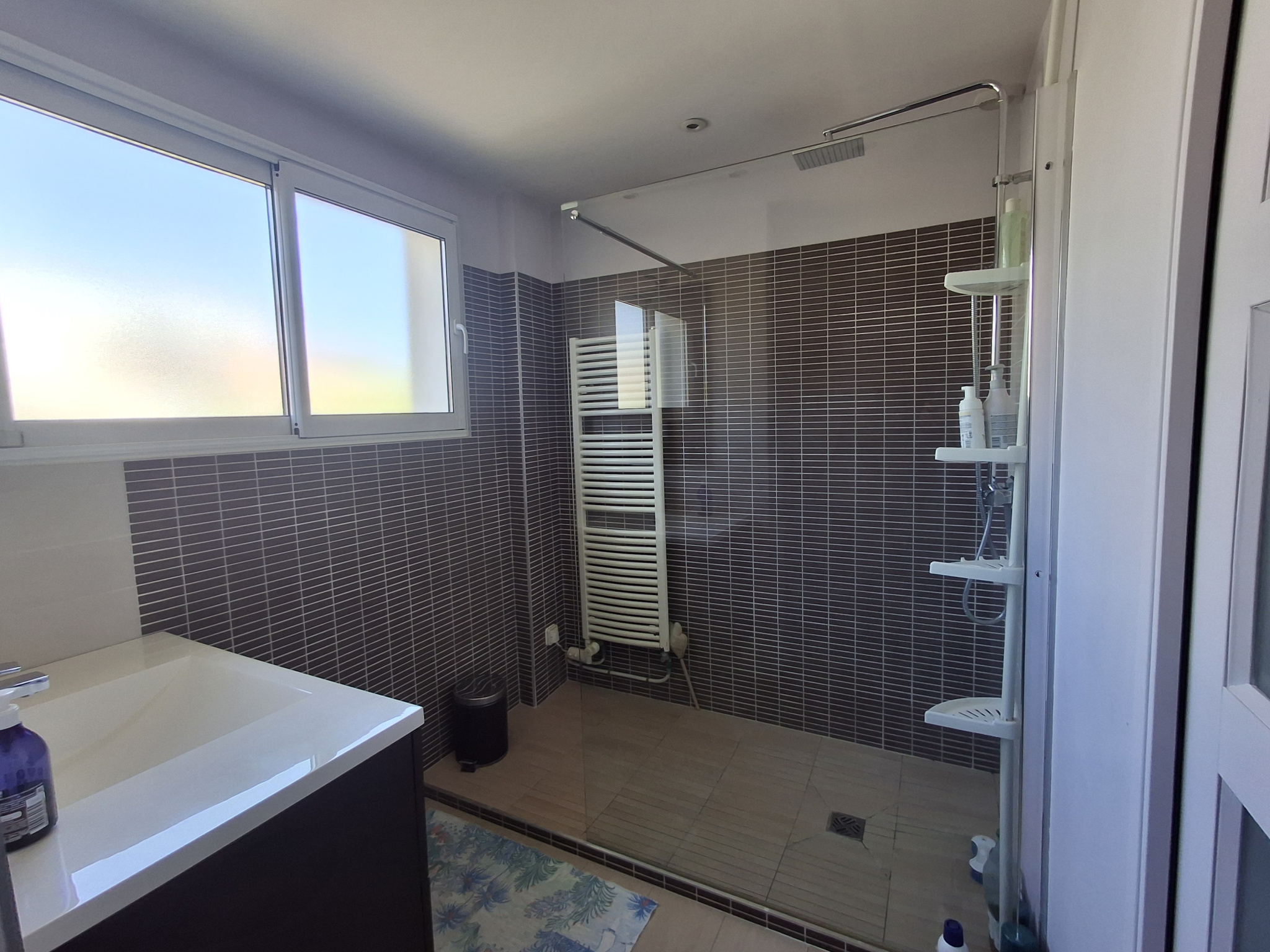 À l’étage, la maison comprend deux chambres, dont une dispose d’un grand dressing. Un bureau, qui peut servir de troisième chambre, est équipé d’un placard, et une salle d’eau avec WC complète cet étage.