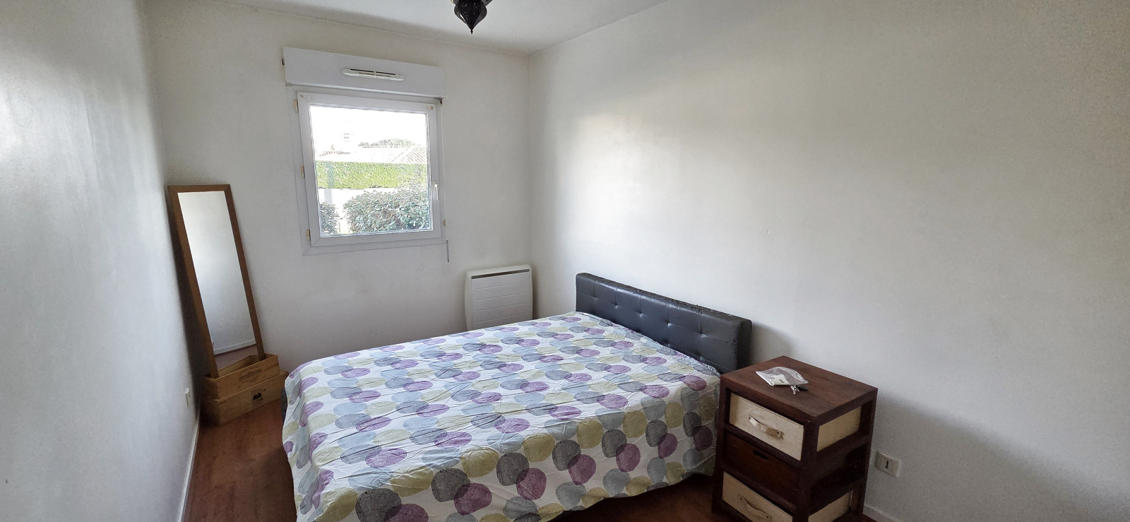 L’agencement intérieur se compose d'une entrée avec placard, une cuisine équipée et un séjour ouvrant sur la terrasse, une chambre avec placard, une salle d'eau , et des toilettes séparées