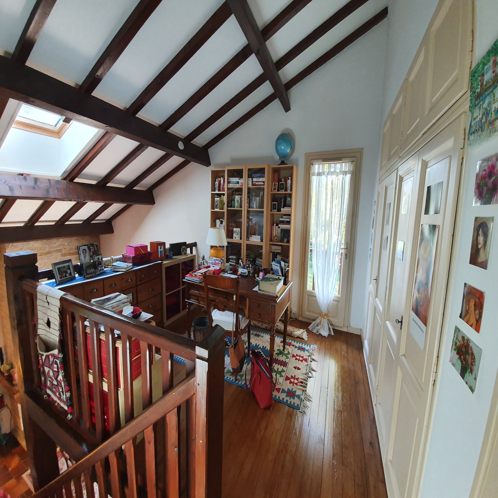A l'étage, une mezzanine/bureau avec balcon, 3 chambres , placards, une salle d'eau avec WC.